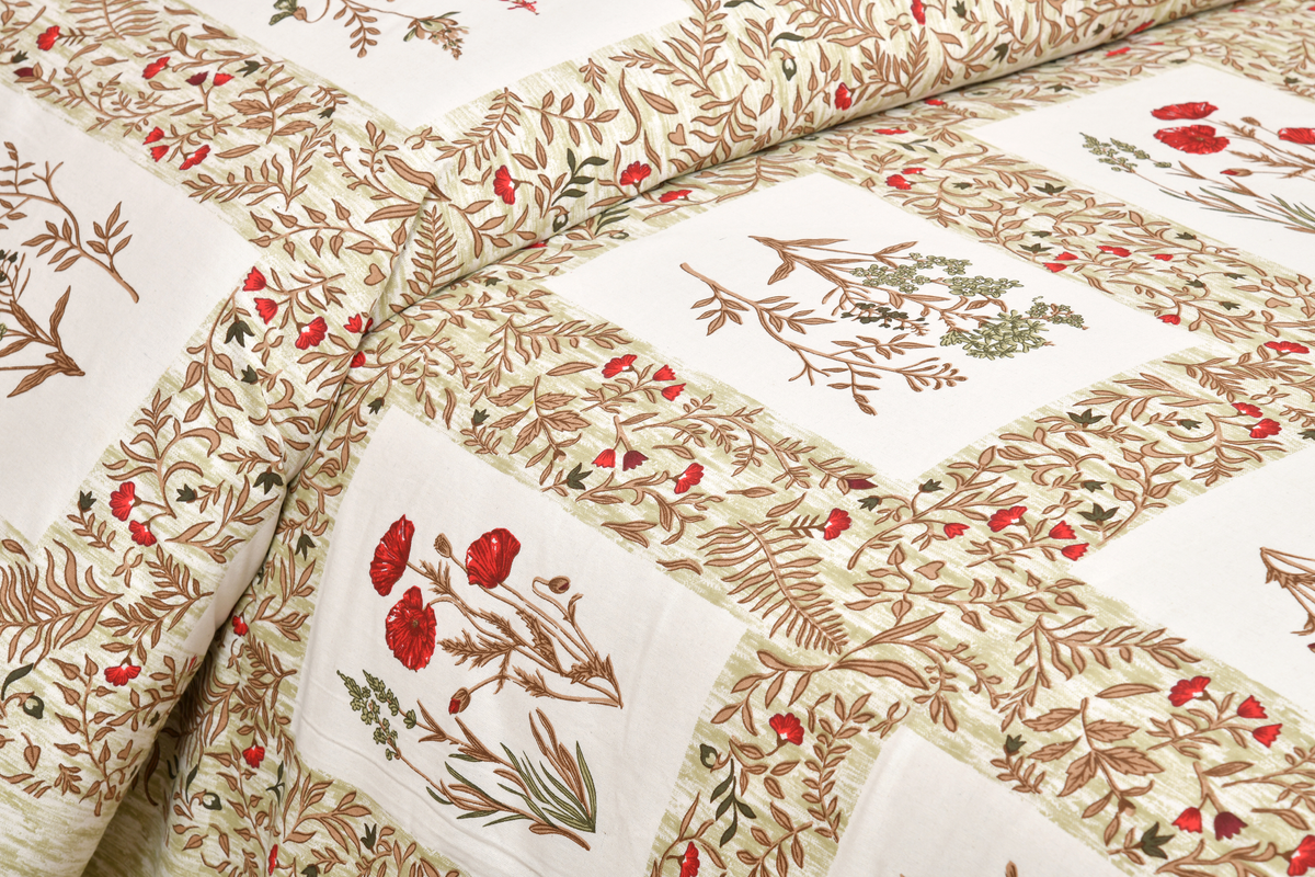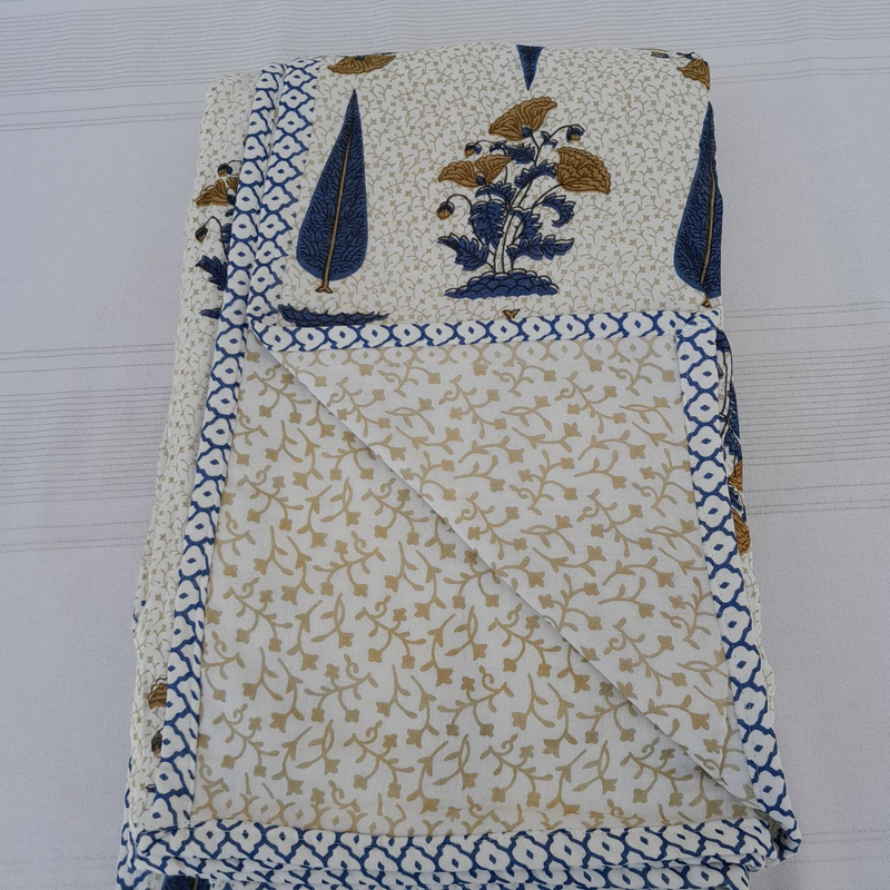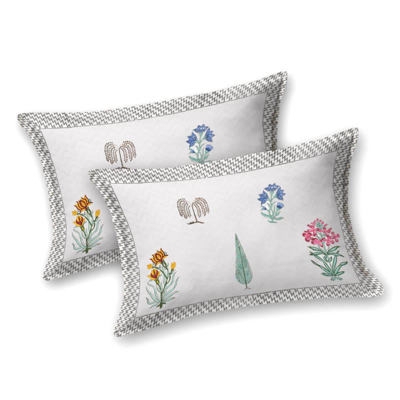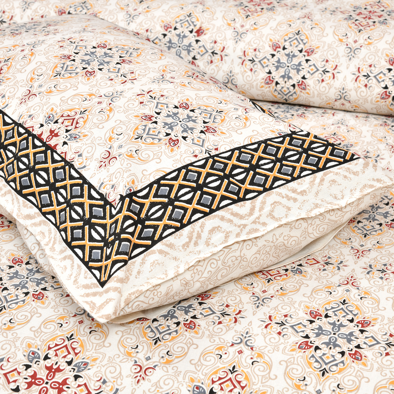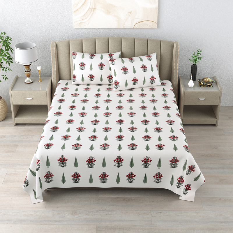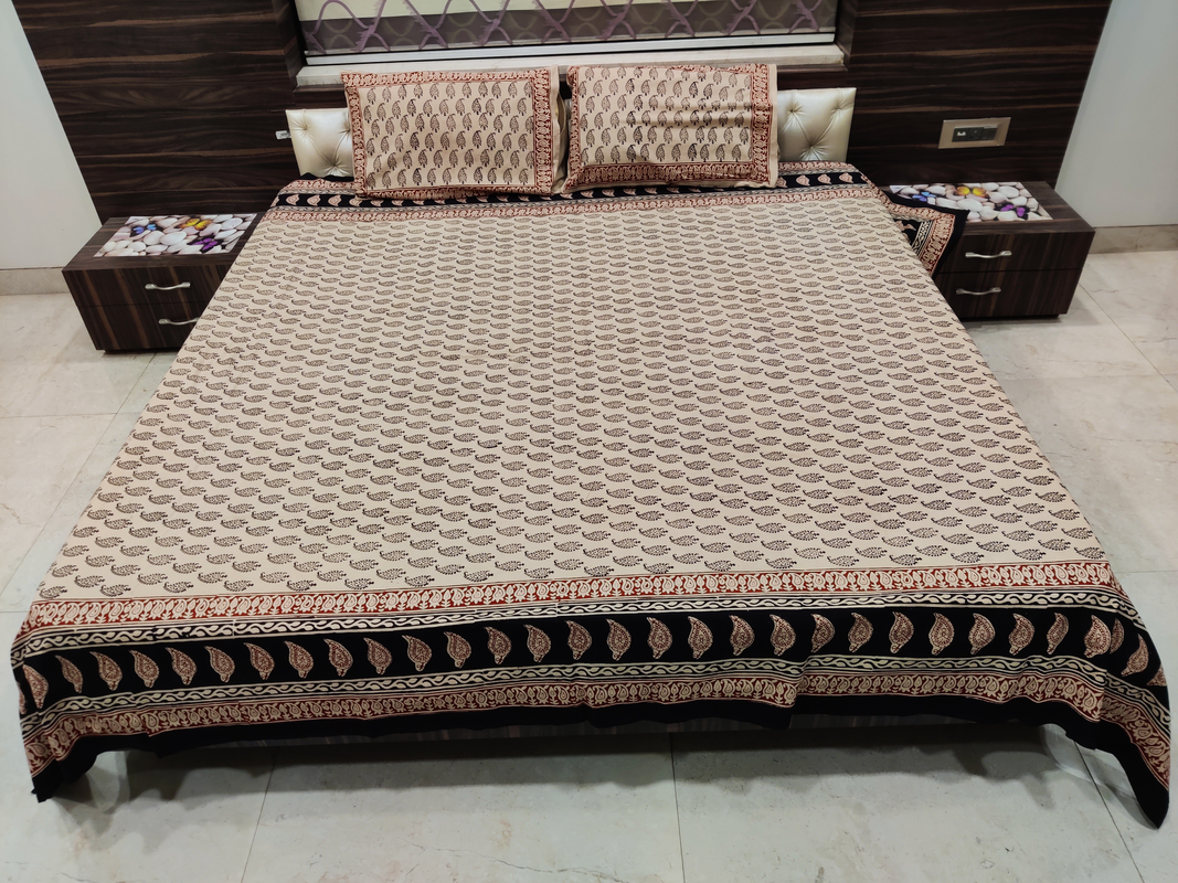 Firdaus Premium Cotton Block Print King Size Bedsheet + 2 Pillow Covers